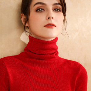 秋冬新款堆堆领针织衫羊毛高领毛衣女修身显瘦内搭加厚套头打底衫
