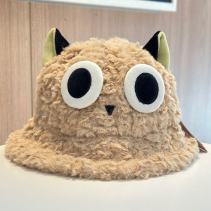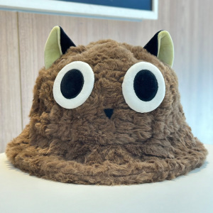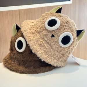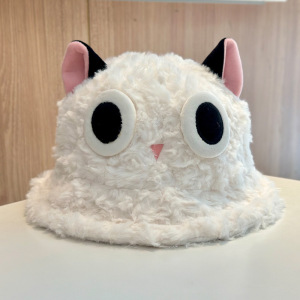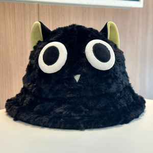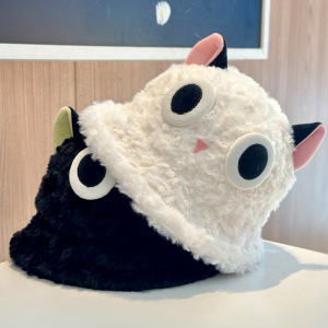 2025新款秋冬可爱罗小黑毛茸茸渔夫帽子女甜美保暖防风套头帽盆帽