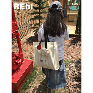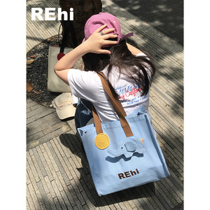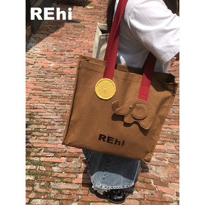 REhi Lucky吉象袋 原创趣味大象帆布包托特包百搭单肩斜挎包小众