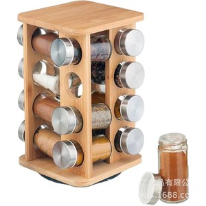 木质厨房调料瓶置物架多层可旋转厨房台面香料罐罐整理架竹木多格