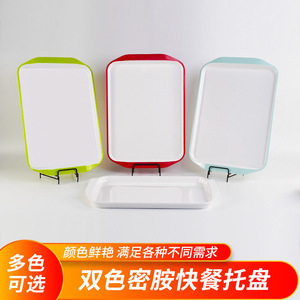 A5密胺托盘双色商用加厚食堂快餐长方形托盘双耳托盘小碗菜端菜盘