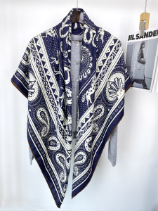 爱心腰果轻奢高档真丝羊毛大方巾双面同色保暖女丝巾披肩围巾批发
