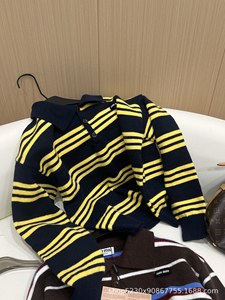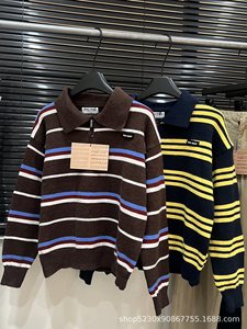 谬系撞色条纹polo领长袖