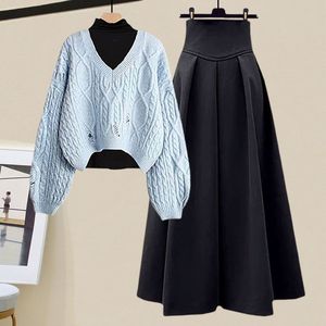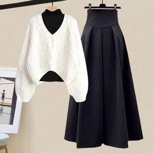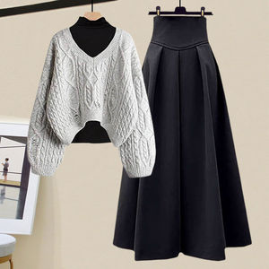 秋冬穿搭一整套2025新款慵懒风洋气针织毛衣显瘦百搭半身裙三件套