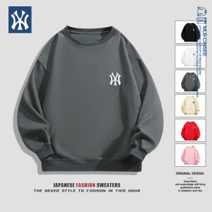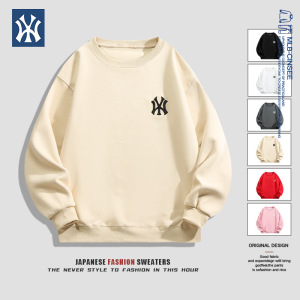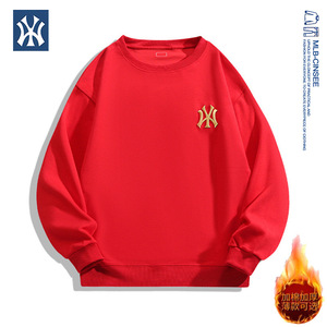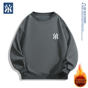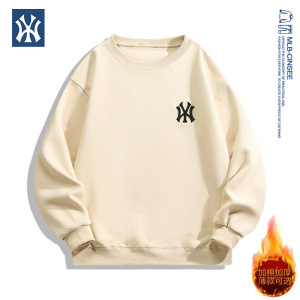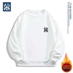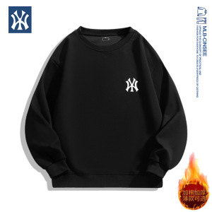 MLB&NY联名2025秋冬潮牌轻奢情侣款刺绣圆领卫衣加绒加厚上衣男士