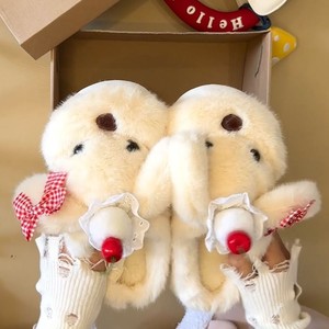 可爱高颜值蝴蝶结小狗毛毛拖鞋女2025秋冬新款厚底保暖包头棉拖鞋