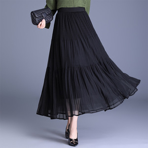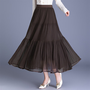 2025年秋季款纯色简约长款大摆时尚百褶裙松紧腰气质休闲半身裙