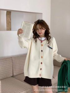 琪镌绘制韩系彩扣设计感洋气针织开衫女秋冬新款宽松软糯毛衣外套