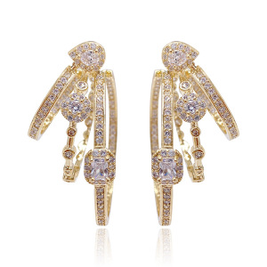 银针锆石几何椭圆形镂空三层耳环法式宫廷风耳钉轻奢高级感耳饰女