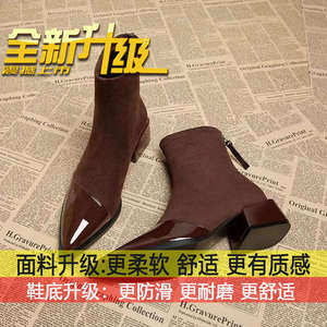 法式气质小踝靴尖头短靴女款2025年春秋季新款网红爆款瘦瘦靴子女