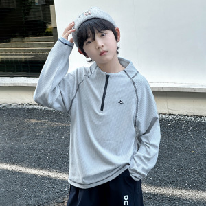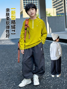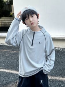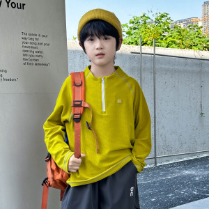 熊猫圆圆2025秋季新款格绒男童运动t恤 儿童半高领包边拉链上衣
