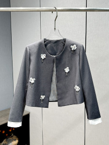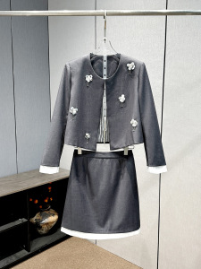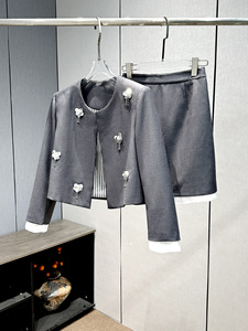 深圳南油2025秋季新款法式名媛小香风镶钻花朵短外套半身裙套装女