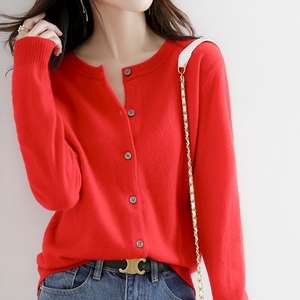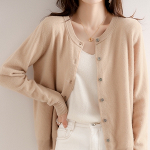 2025秋季新款针织开衫女春季外搭宽松短款休闲灰色圆领毛衣外套