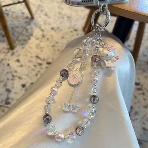 可爱粉色kt猫珍珠手机链挂绳小众ccd相机挂件少女甜美精致钥匙扣