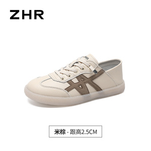 ZHR则则真皮拼色软底德训鞋女2025新款简约百搭休闲鞋舒适板鞋女