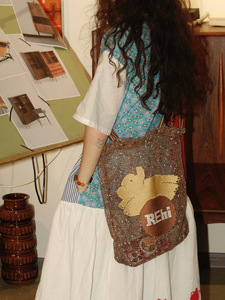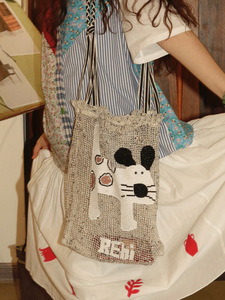 REhi 麻花兜兜袋 原创编绳小狗绣花编织大容量单肩包斜挎托特包