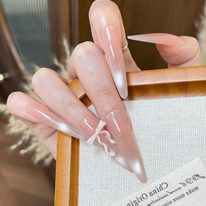 卡通小熊穿戴甲短款小清新浅蓝波点蝴蝶结光疗指甲贴片甜美美甲片