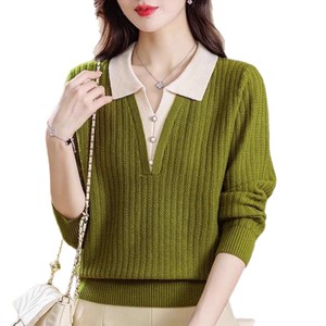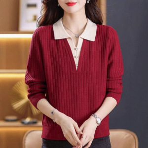 假两件针织衫上衣女妈妈秋冬新款POLO领毛衣女洋气百搭打底衫