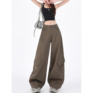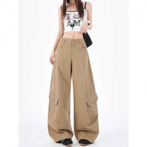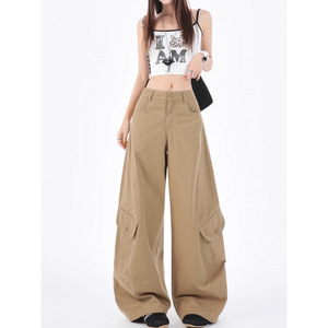 大码女装美式工装弯刀裤女秋季新款大码显瘦松弛感裤子