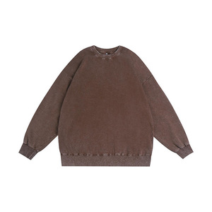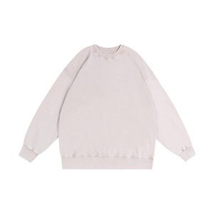 350g美式洗水复古圆领卫衣跨境大码毛圈落肩做旧套头水洗卫衣男