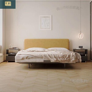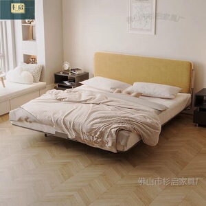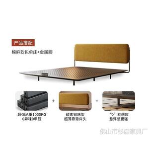 现代简约布艺床中古风碳素钢床主卧无边双人无床头榻榻米小户型床