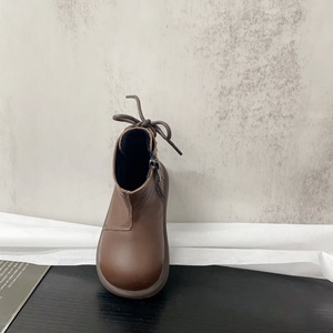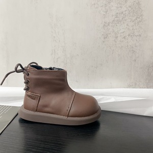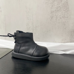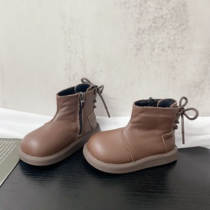小童洋气后跟绳带简约拼接款加绒短靴2025冬款新品男女童真皮短靴