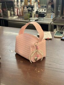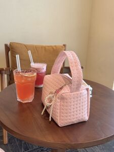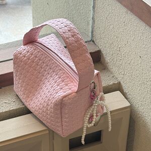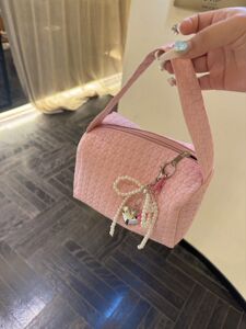 粉色花朵编织纹新款手拎包小包包便携化妆包收纳包整理袋外贸批发