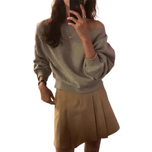 韩国chic秋季法式小心机斜领不规则露肩设计感宽松百搭长袖卫衣女