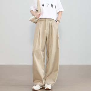 青灰色日系休闲工装裤女春季2025新款宽松遮跨梨形镰刀弯刀阔腿裤