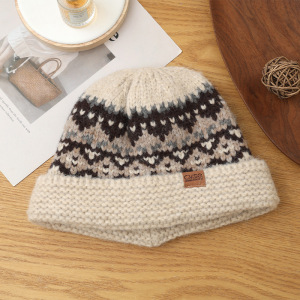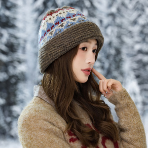 2025冬新款帽子女复古拼色毛线帽加厚保暖针织帽大头围显脸小冷帽