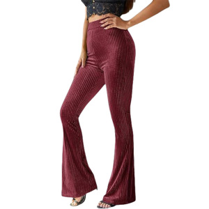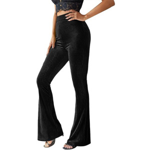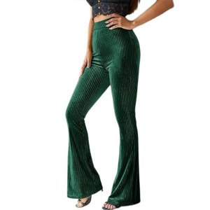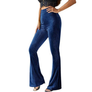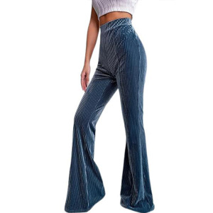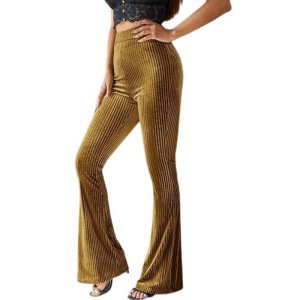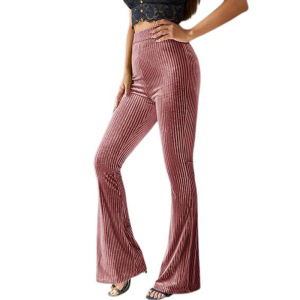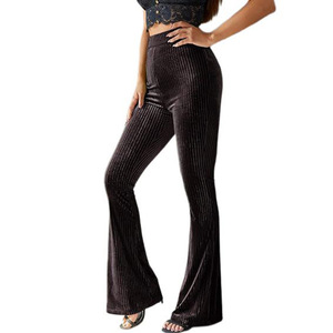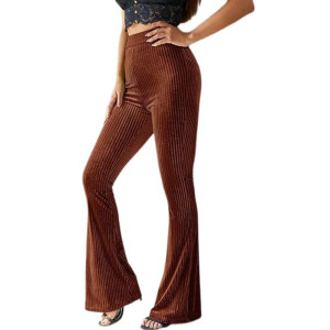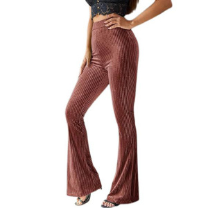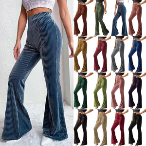 欧美独立站时尚高腰灯芯绒条绒喇叭裤秋冬新款纯色休闲微喇长裤女