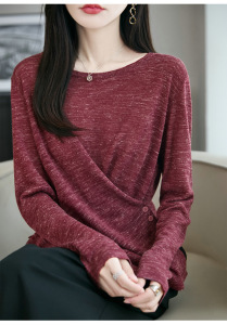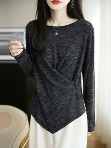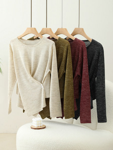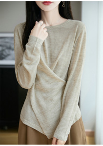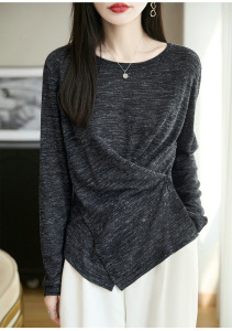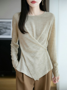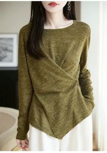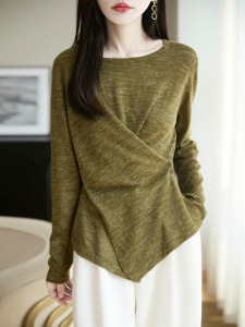 定染幻彩麻早秋亚麻混纺针织圆领气质不规则交叉薄款套头针织衫女