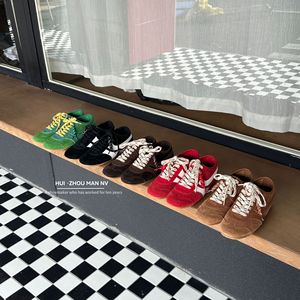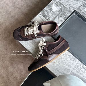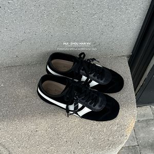 牛皮版复古红色德训鞋女2025新款拼色休闲板鞋运动内增高阿甘鞋女
