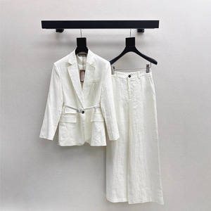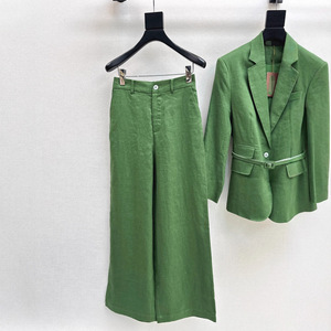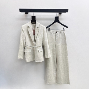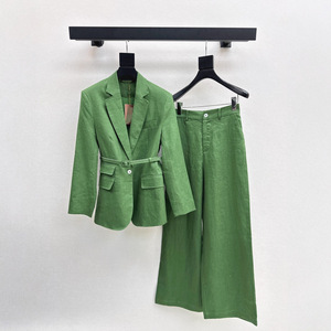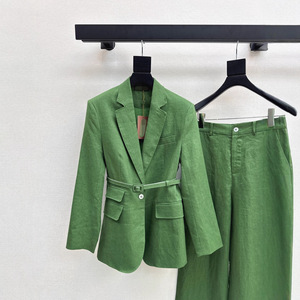 深圳南油新款气质显瘦高挑帅气通勤套装腰带装饰西装外套+直筒裤
