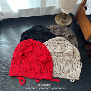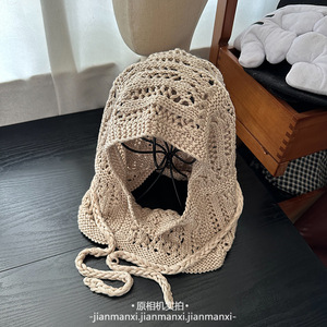 单色简约手工钩针毛线巴拉克拉法帽子女款韩系氛围感镂空套头帽潮