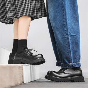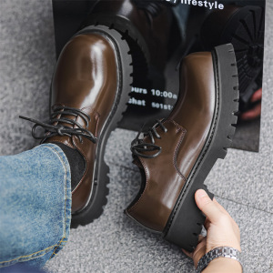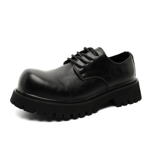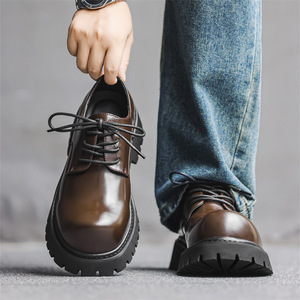 2025秋冬季新款男款皮鞋年轻人休闲英伦风增高德比鞋黑色厚底鞋子