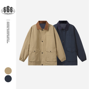YANSANXIA中长款复古工装风衣军事风男翻领宽松猎装夹克外套JK600