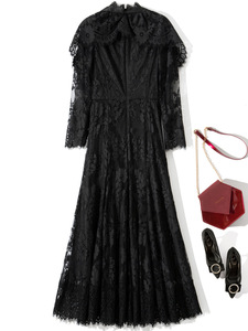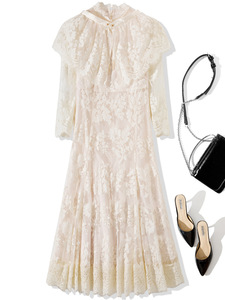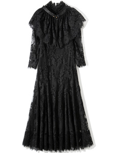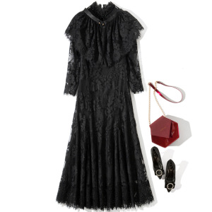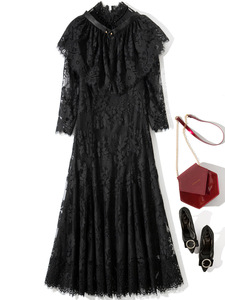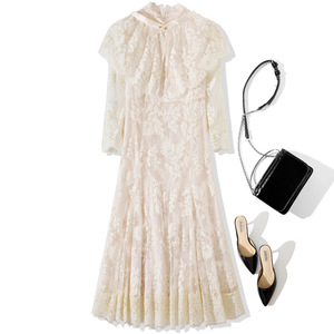L6988 2025年秋季女装新款圆领活动腰封装饰泡泡长袖水溶连衣裙