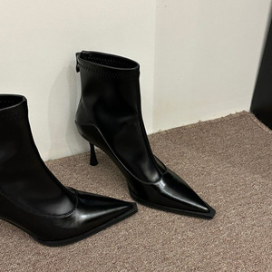 黑色高跟短靴2025新款辣妹尖头细跟小裸靴百搭弹力瘦瘦靴