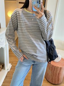 早秋新款清爽条纹撞色长袖T恤 090c303