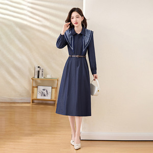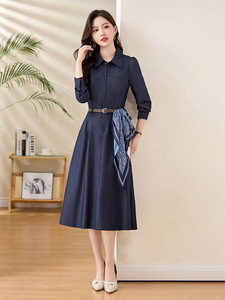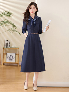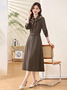 法式通勤风衬衫连衣裙女2025秋季新款修身显瘦中长款长袖连衣裙