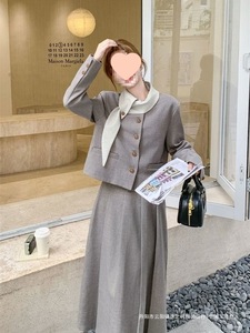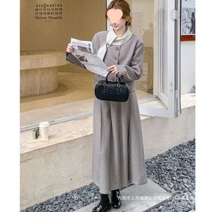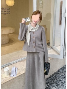 小香风撞色领结设计西装半身裙两件套女秋季款感流行裙子套装褶皱