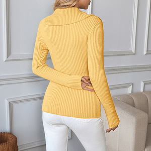 欧美跨境2025新款个性青春潮流珍珠装饰纯色不对称v领修身毛衣女