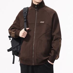 安洋美式重磅加厚加绒开衫立领卫衣男士2025秋冬新款保暖百搭外套