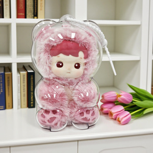 泡泡玛特HACIPUPU小熊软糖保护壳搪胶毛绒挂件透明防尘罩保护壳