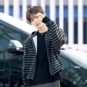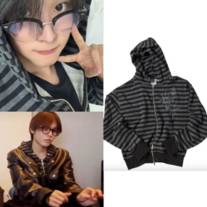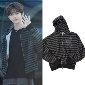 现货章昊Riku同款韩国小众潮牌宽松连帽条纹外套女即墨卫衣厂家