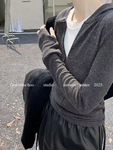 GRACETINAHOO法式松弛感简约慵懒通勤百搭连帽花纱长袖T恤女TB924