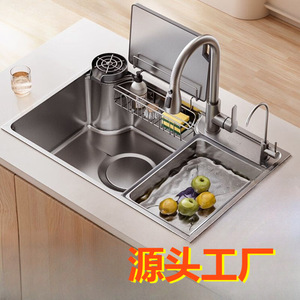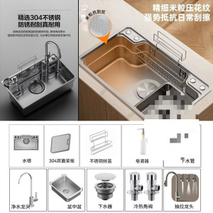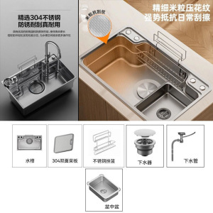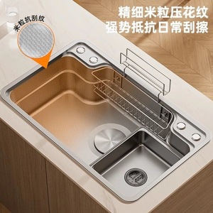 日式大单槽304 不锈钢水槽洗碗池厨房洗菜盆一体拉伸洗菜水池全套