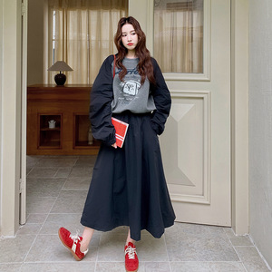 舒适休闲韩系长袖半身裙两件套女2025年秋季新款韩版清新卫衣减龄