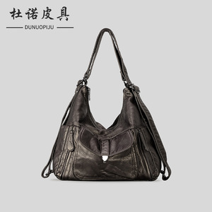 小众设计柔软大容量水洗背包腋下包斜跨包三用背包复古机车包女